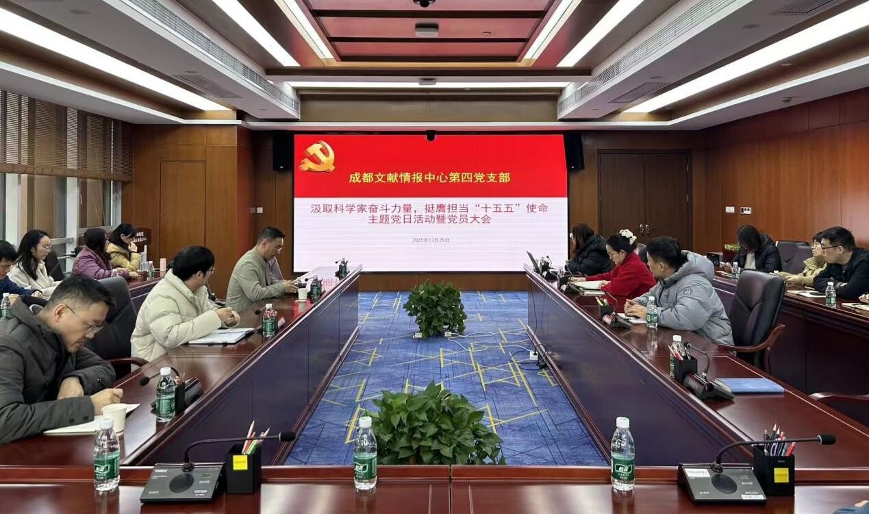 12月29日,成都文献情报中心第四党支部召开党员大会暨“汲取科学家奋斗力量,挺膺担当“十五五”使命”主题党日活动。
