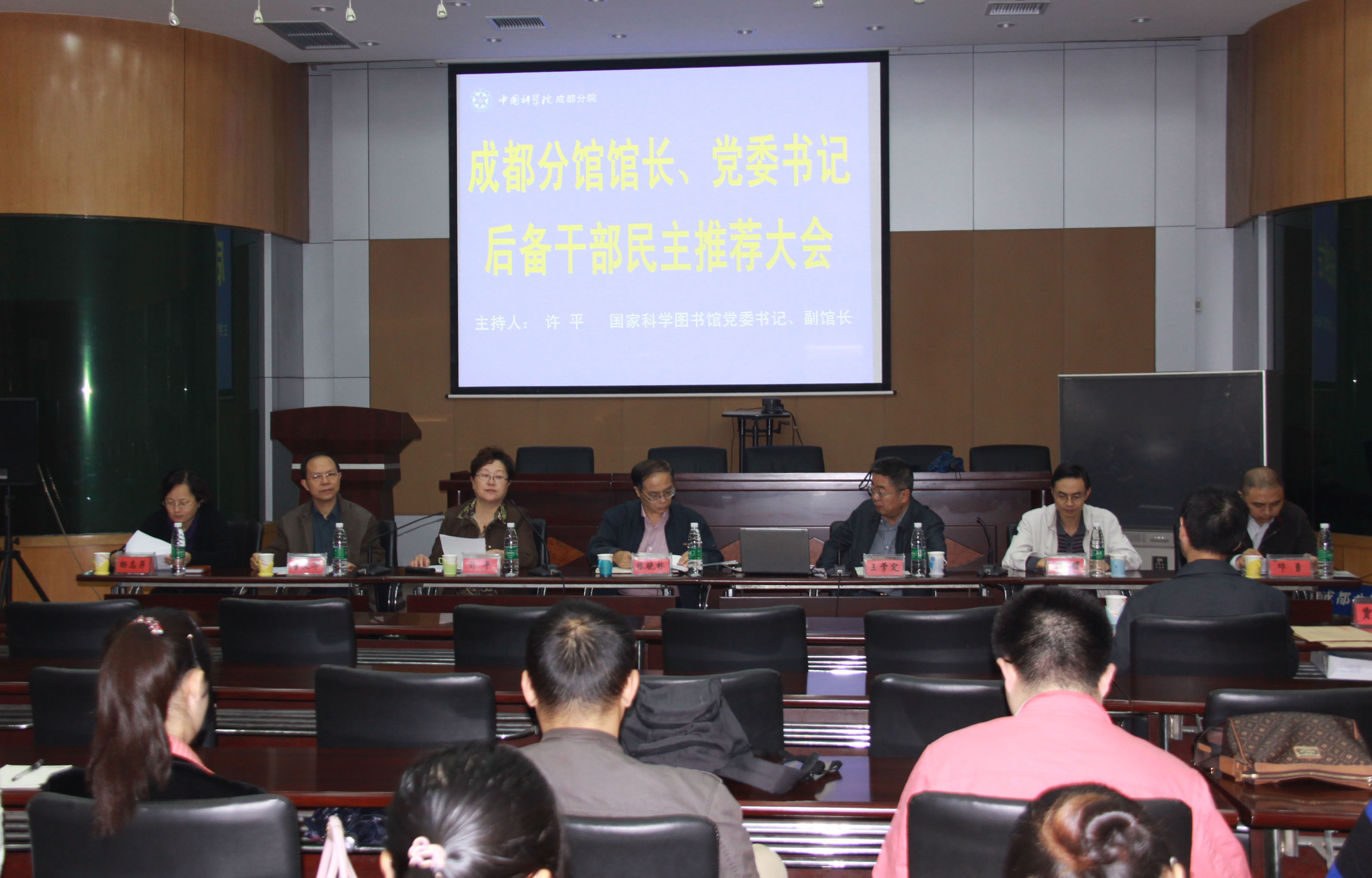 根据中科院人教局关于国科图干部管理有关事项的精神,9月27日上午,成都分院党组与国家科学图书馆在国科图成都分馆举行后备干部民主推荐大会。考察组成员由国家科学图书馆馆长张晓林、党委书记许平,成都分院党组书记王学定、组织人事处处长熊鸣、监察审计处干部贾振天等5人组成。成都分馆领导班子、部门副主任及以上管理干部、中级及以上科研业务人员、党委委员、纪委委员、党支部书记、职代会常委、民主党派代表等45人参加了推荐大会。
