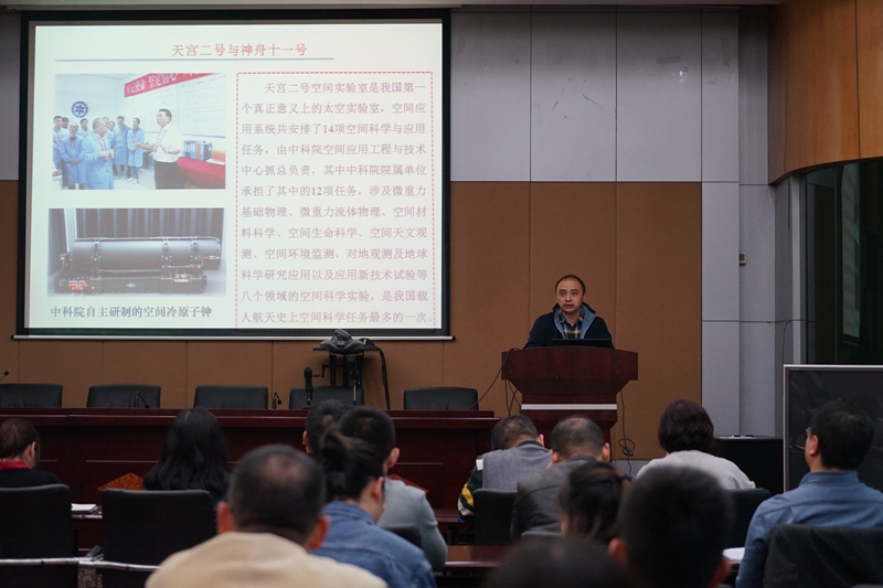 中心党委书记邓勇作了“学习宣传重大创新成果推动中心十三五规划实施”专题党课报告。他以准确把握世情国情院情为切入点,以中国科学院5年来在“面向世界科技前沿、面向国家重大需求、面向国民经济主战场”三方面的重大成果产出为主要内容,集中宣讲了“悟空号”-暗物质粒子探测器、“FAST”-500米口径球面射电望远镜、“探索一号”科考船、“墨子号”量子科学实验卫星等一系列中科院取得的重要科技成果。同时结合案例宣传了南仁东先生先进事迹,号召科研人员向南仁东等优秀科学家学习。