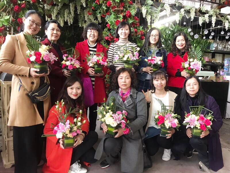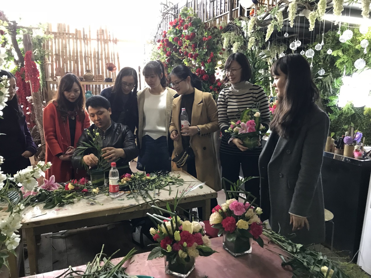 插花培训活动在三圣乡成都尚艺花品馆举办。首先,花艺培训老师为大家介绍了花艺基本知识,包括插花的时间性、生命期、时尚性、装饰性等特点,以及插花所使用的材料及工具的使用方法等,并为大家示范制作了一个插花作品。随后,大家开始了插花实践,芬芳的百合、浪漫粉色的玫瑰、高雅神秘的桔梗、红色粉色的康乃馨,以及各色花卉放满了一桌。在老师的指导下,大家的作品讲究色彩搭配,错落有致。而艺术感满分的同事也开始了与众不同的艺术插花,同样美丽别致。