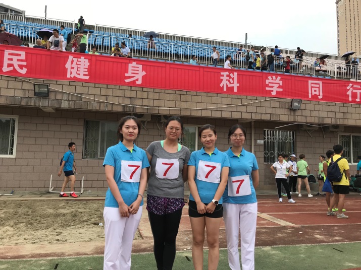 运动会上,参赛队员们团结一致,奋力拼搏。在个人项目比赛中,田雅娟获女子跳远(乙组)第2名,田倩飞获女子1分钟跳绳第5名。