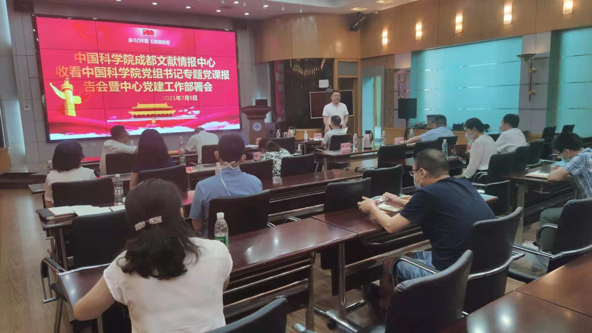 7月5日,成都文献情报中心领导班子、党委委员、纪委委员、中层以上干部、支部书记集中收看了党组书记、院长侯建国同志做的专题党课报告,并对中心下一阶段党史学习教育等各项重点工作进行了部署。