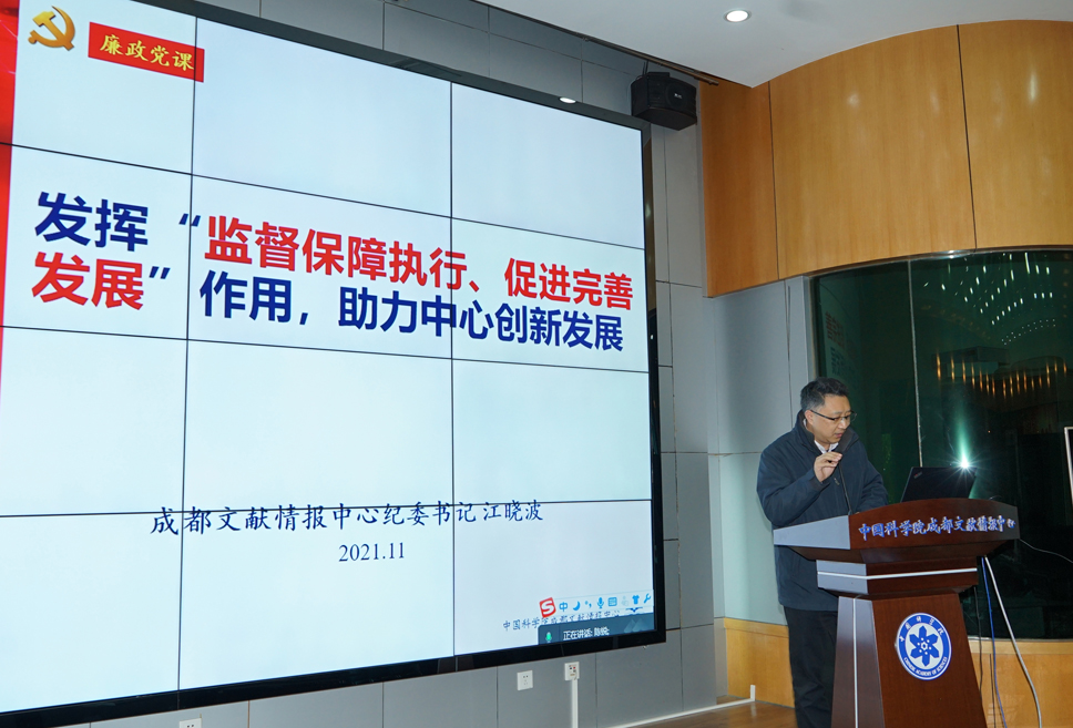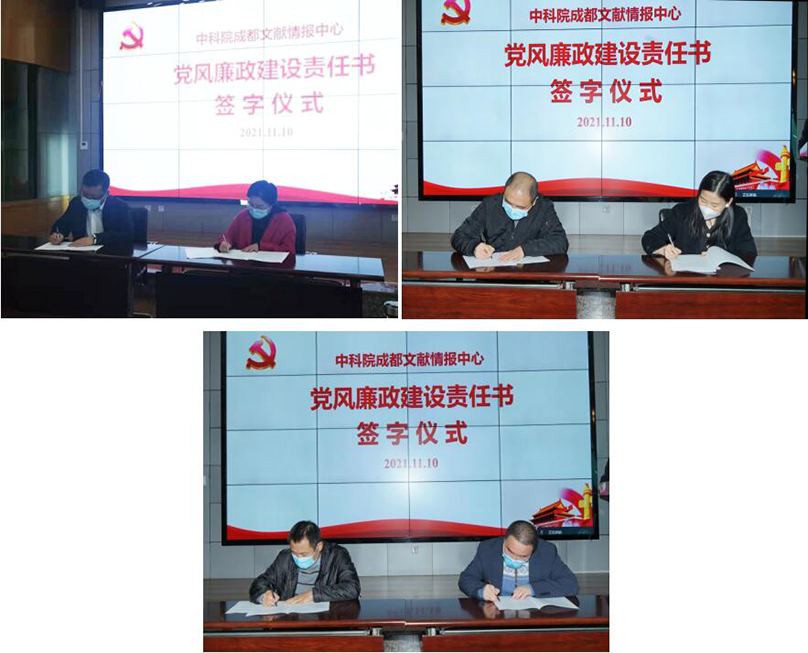 11月10日,成都文献情报中心召开警示教育大会,组织签署《党风廉政建设责任书》,宣讲廉政党课专题报告。中心党委书记曲建升,中心主任、党委副书记邓勇,副主任房俊民,纪委书记江晓波参加会议。会议由党委办公室副主任(主持工作)刘宇主持。