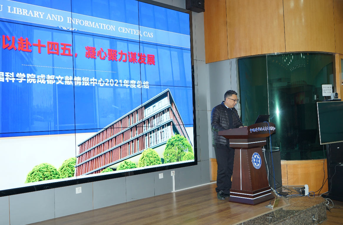 江晓波作《“全力以赴十四五,凝心聚力谋发展”中心2021年度总结》报告
