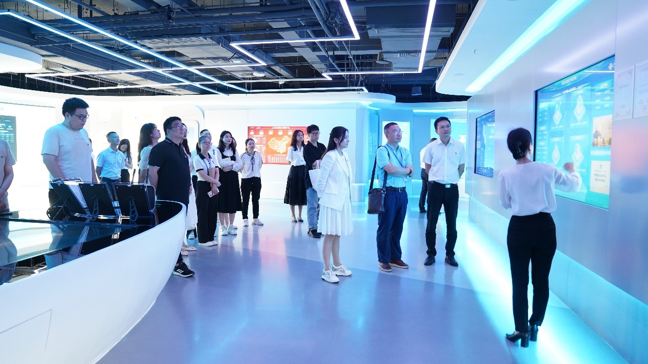 首先,全体党员参观中国联通(四川)产业互联网展厅。四川联通品牌工程部金牌讲师雷雨霏为参加活动的全体党员同志介绍了中国联通在区块链、大数据、联通云和大安全等数字经济领域的科技创新实践。
