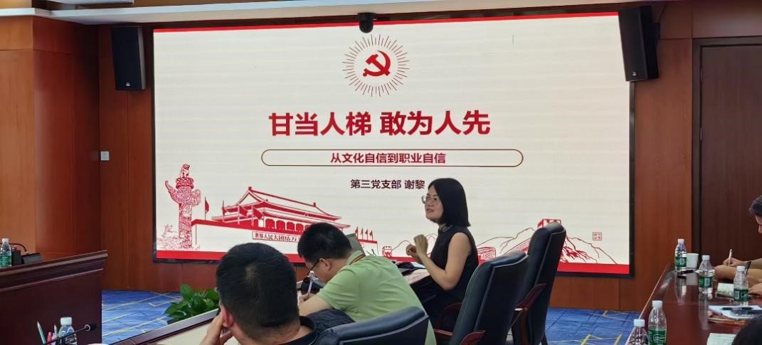 书记讲党课环节,江晓波和支部书记谢黎分别以《以优良学风助力抢占科技制高点》《甘当人梯·敢为人先--从文化自信到职业自信》为题,向全体党员宣传科研诚信、科技伦理、文化自信与职业自信。