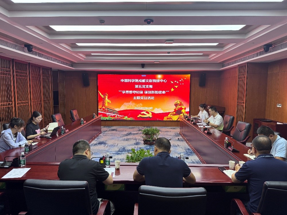 8月29日,成都文献情报中心第五党支部举办“学思想守纪律 谋创新担使命”主题党日活动。会议由支部书记刘宇主持。