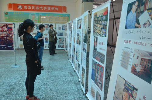 西南民族大学在充分了解了成都分馆拥有的科普资源后,决定在4月23日世界读书日之际,在该校老校区的图书馆一楼大厅展出《走进院士书房图片展》、《卓越贡献崇高荣誉——国家最高科学技术奖奖科学家巡礼(2000—2011)》两个展览。由于展览反馈良好,该校工作人员决定将该展览延长到暑假来临之际。