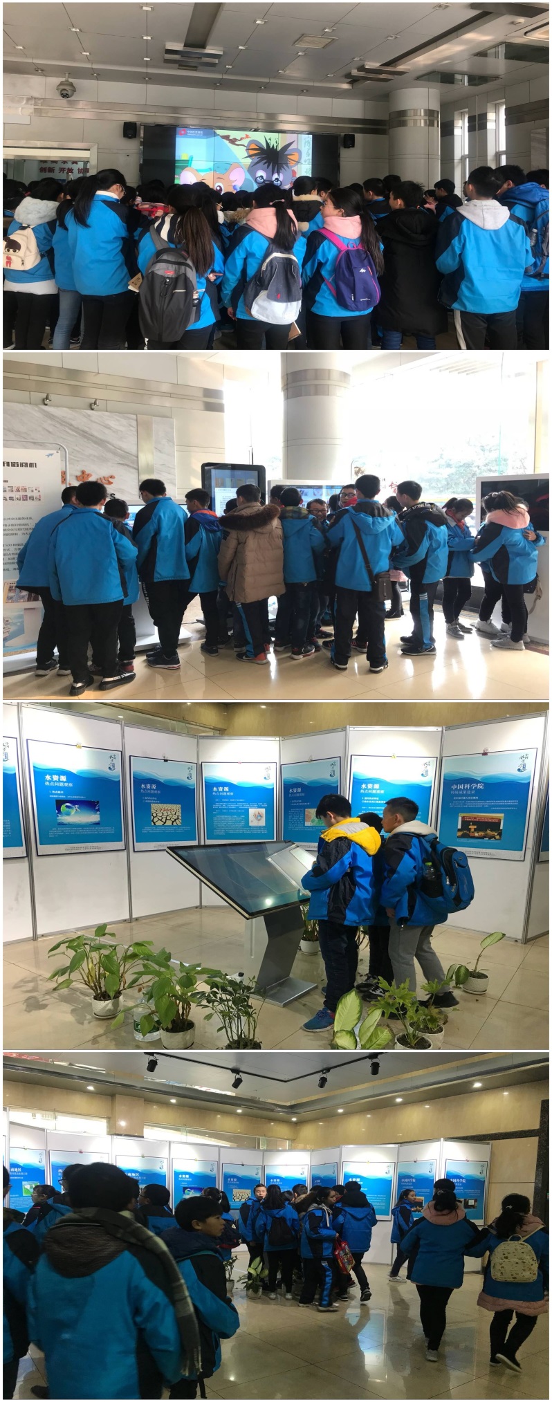 信息服务部的科普专职工作人员许文娟带领学生们来到中心触摸互动展厅,在大屏幕上为大家展示介绍了中心四个系列的线上展览——世界前沿科技进展、中科院重大成果展、公众关注的科学热点问题及科学与文化系列展,并引导学生们观看了科普展厅的实体展览。