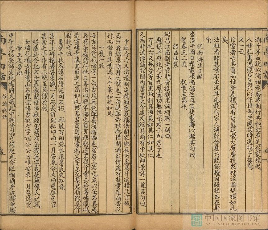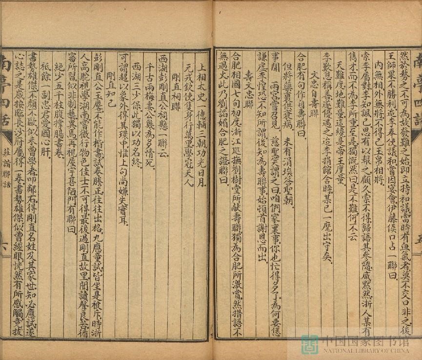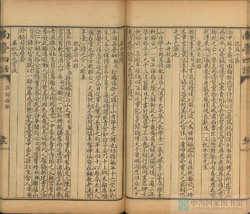 清·李伯元所撰“庄谐联话”是《兰亭四话》中的一话,主要记录了清代的人物轶事,是一本重要的笔记史料,内容生动、别致有趣,可作为春节茶余饭后的“悦”读。此次线上展览,我们撷取了“庄谐联话”中的一卷,以飨读者。