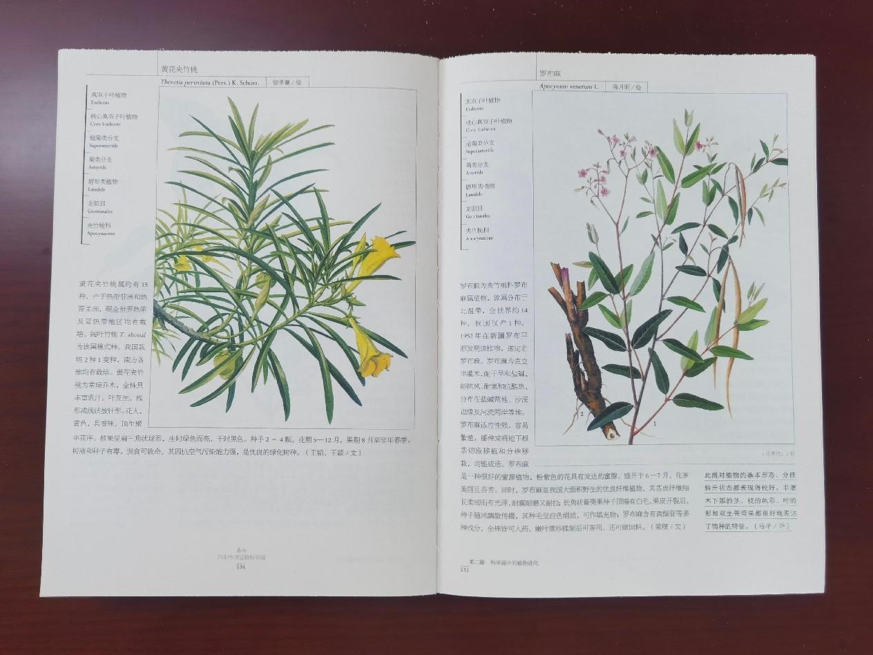 注:上图左为曾孝濂绘制的《黄花夹竹桃》,右为陈月明绘制的《罗布麻》。