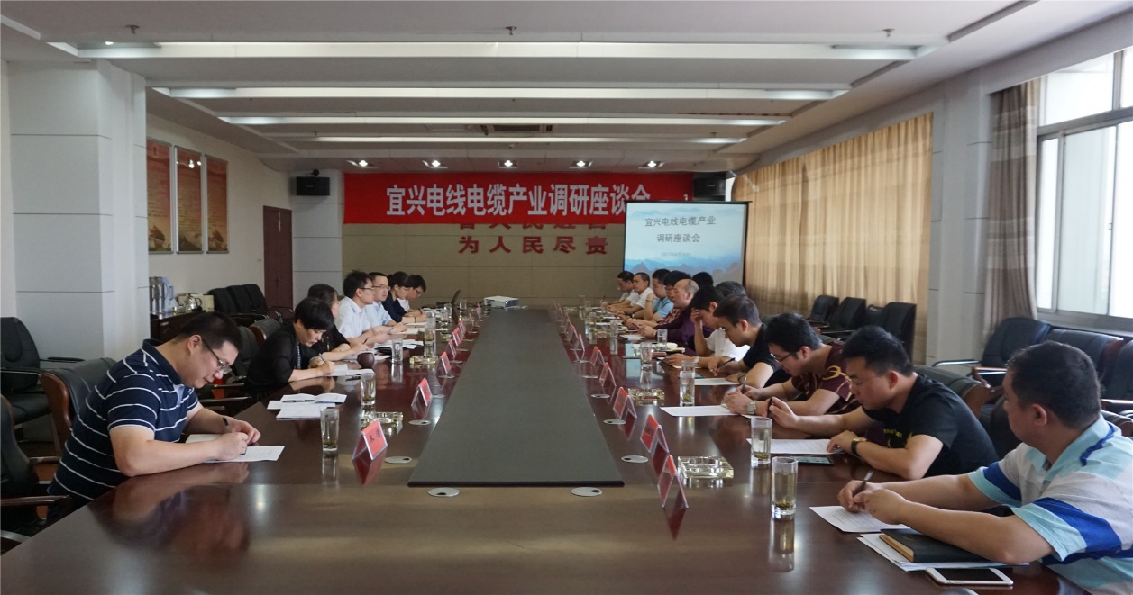 调研组与宜兴市电线电缆行业协会会长和宜兴市十一家规模以上电线电缆企业的负责人进行座谈。协会会长蒋建中对宜兴市电线电缆行业的总体情况、发展历程、经济地位、主要特点和当前面临的一些问题进行了系统的介绍。无锡江南电缆有限公司副总经理夏亚芳、无锡市曙光电缆有限公司董事长谈志文、江苏长峰电缆有限公司总经理陆亚军、无锡市群星线缆有限公司总经理刘军波、无锡市华美电缆有限公司总经理华健等与会企业负责人分别介绍了各自企业的基本情况,并围绕调研组的调研提纲,对企业发展愿景、经济新常态下的机遇与挑战、“一带一路”倡议实施的影响、国家重大工程参与情况或可行性、产业技术创新与新增长点探索、线缆技术标准、同质化竞争、产能过剩与否、贷款融资、国外龙头线缆企业比较、产业发展建议等问题各抒己见、畅所欲言,会议气氛热烈。调研组还先后实地走访了宜兴电缆行业的四家上市公司,并分别与江苏亨鑫科技有限公司总工程师刘中华、远东智慧能源股份有限公司副董事长蒋华君、江苏中超电缆股份有限公司副总经理霍振平、俊知集团首席技术官刘湘荣等公司领导和相关业务骨干进行座谈交流。