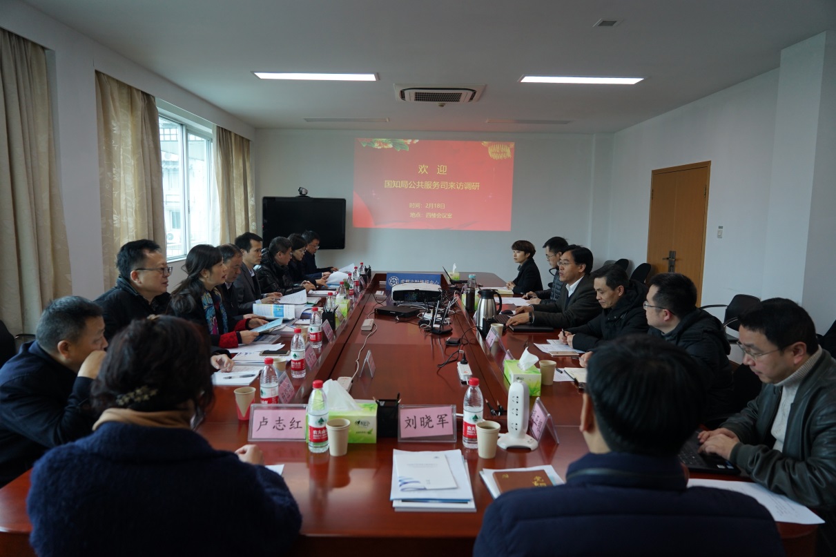 2019年2月18日,国家知识产权局公共服务司王培章司长和服务体系建设处王双龙处长等,四川省知识产权服务促进中心谢商华主任和杨早林副主任等一行10人调研中国科学院成都文献情报中心,调研知识产权公共信息服务开展情况、知识产权信息资源及应用系统建设和科研工作对知识产权信息利用情况等,双方举行交流座谈会。成都文献情报中心主任张志强研究员,以及科技处、战略情报部、网络与信息系统部、区域发展咨询部等部门负责人和知识产权研究团队人员参加座谈会。张志强主持交流座谈会。