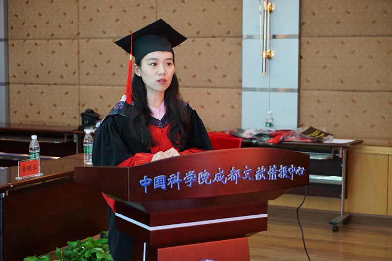 成都中心本届共有8名硕、博士毕业生,任晓亚同学作为全中心博士研究生代表发言,表达对导师及中心培养的感激之情、感恩之心。在扶正流苏仪式上,中心学位评定委员会委员、党委书记曲建升为成都中心毕业生扶正流苏,为同学们的研究生生涯画上了圆满的句号。