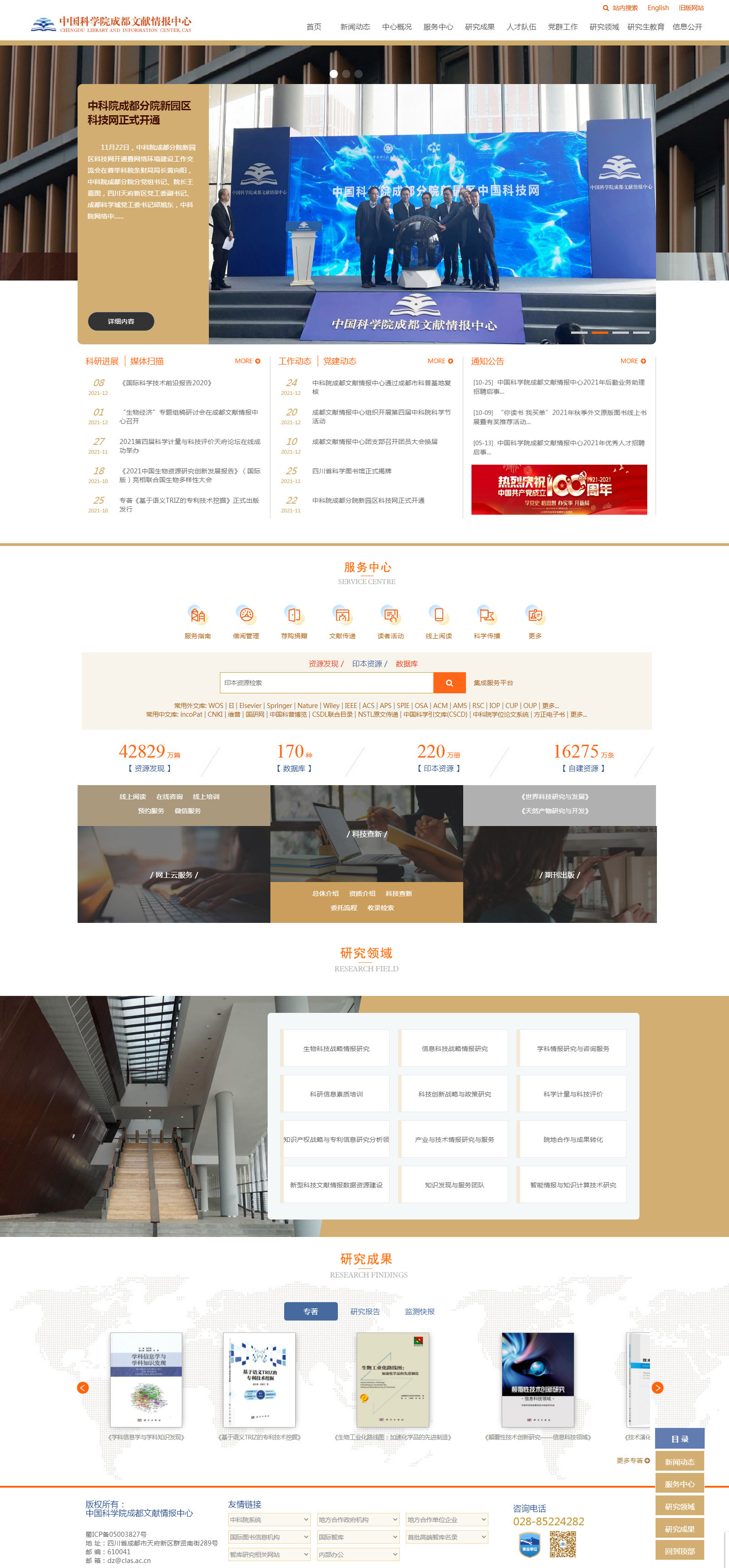在启动新园区主体搬迁工作之际,成都文献情报中心中文机构门户网站(以下简称“新主页”)圆满完成升级改版,于12月29日正式上线发布。