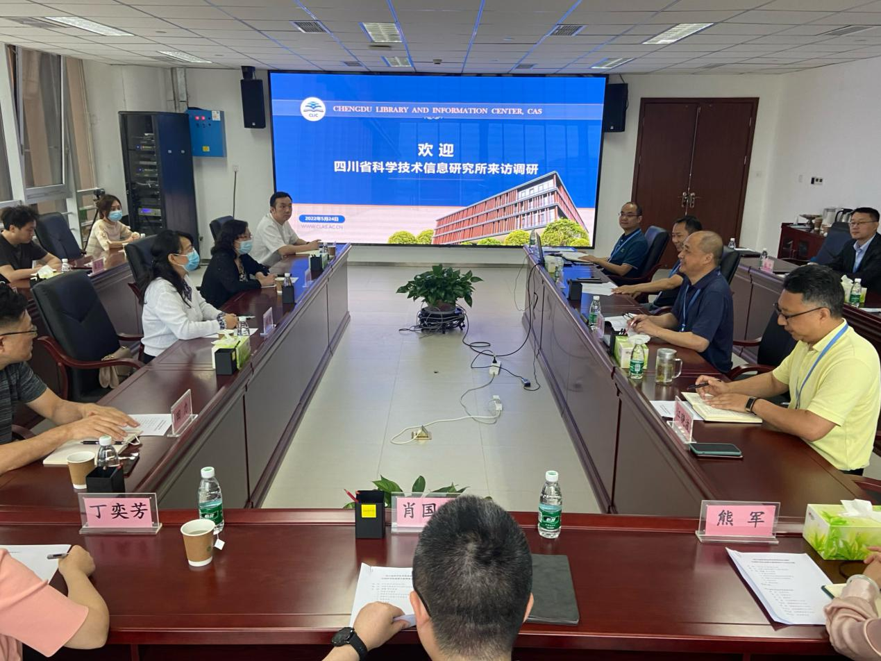 5月24日上午,四川省科学技术信息研究所党委书记程劲一行调研中科院成都文献情报中心。中心主任邓勇、副主任房俊民、纪委书记江晓波参加调研。