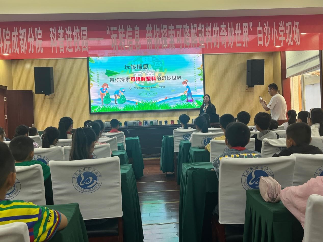 5月25日,中心在天府新区白沙小学举办了科普讲座《玩转信息——带你探索可降解塑料的奇妙世界》,由负责科普工作的许文娟老师主讲。讲座内容涉及可降解塑料、垃圾分类等科普知识和学习研究探索全新领域的科学方法及信息检索的小技巧等。通过生动的讲解和实例展示,深入浅出地让学生们深入了解了可降解塑料可降解的基本原理、主要分类、每种类型的优缺点及主要应用领域等,并让学生们通过垃圾分类比赛,学习了垃圾分类的科学知识。