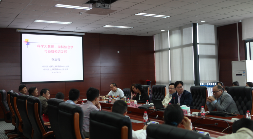 2016年4月20日上午,中科院成都文献情报中心主任、中科院文献情报中心副主任张志强研究员一行莅临西南大学图书馆为大家作了一场精彩的学术报告。学术报告会由西南大学图书馆副馆长苏延科主持,图书馆各部门主任、具有高级职称或博士(含在读)学位的馆员、学科馆员、专业馆员等,以及计算机与信息科学学院信息管理与信息系统系的部分老师和学生们聆听了报告。