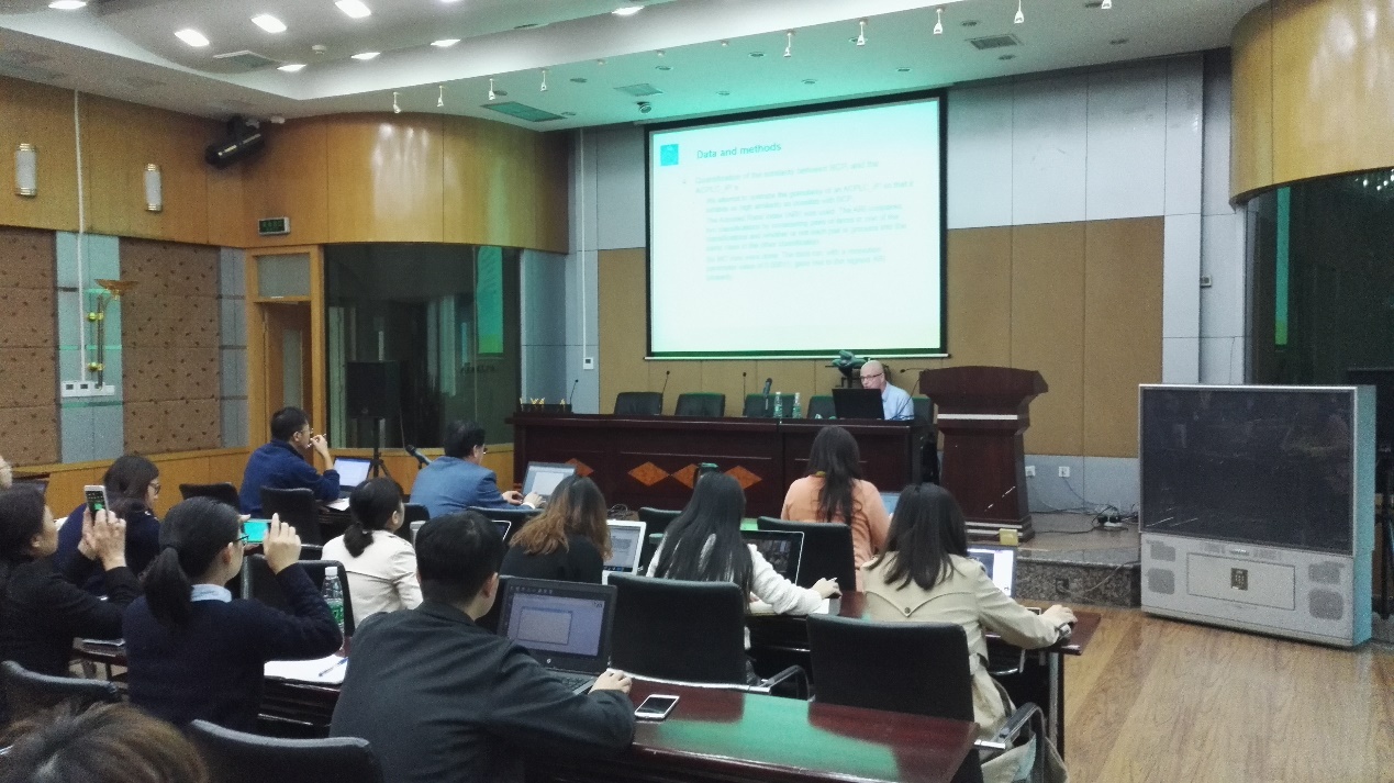 访问期间,成都文献情报中心主任、科学计量与科技评价研究中心主任张志强研究员与Per副教授讨论了双方的合作研究方向、交流互访及人才联合培养计划,并达成初步意向。科学计量与科技评价研究中心执行主任陈云伟研究员向其详细介绍了中心机构设置及组织模式、主要业务发展体系及方向、科研成果及奖励等。中心部分研究人员及研究生围绕文献计量学与科学计量学的研究热点和前沿,结合个人研究方向和兴趣,与Per副教授进行了形式多样的学术讨论。Per副教授还为中心全体员工与师生作了两个题为“从算法上构建论文分类的粒度:主题”与“一个免费的文献计量分析工具和一个网络与可视化分析工具”的学术报告。