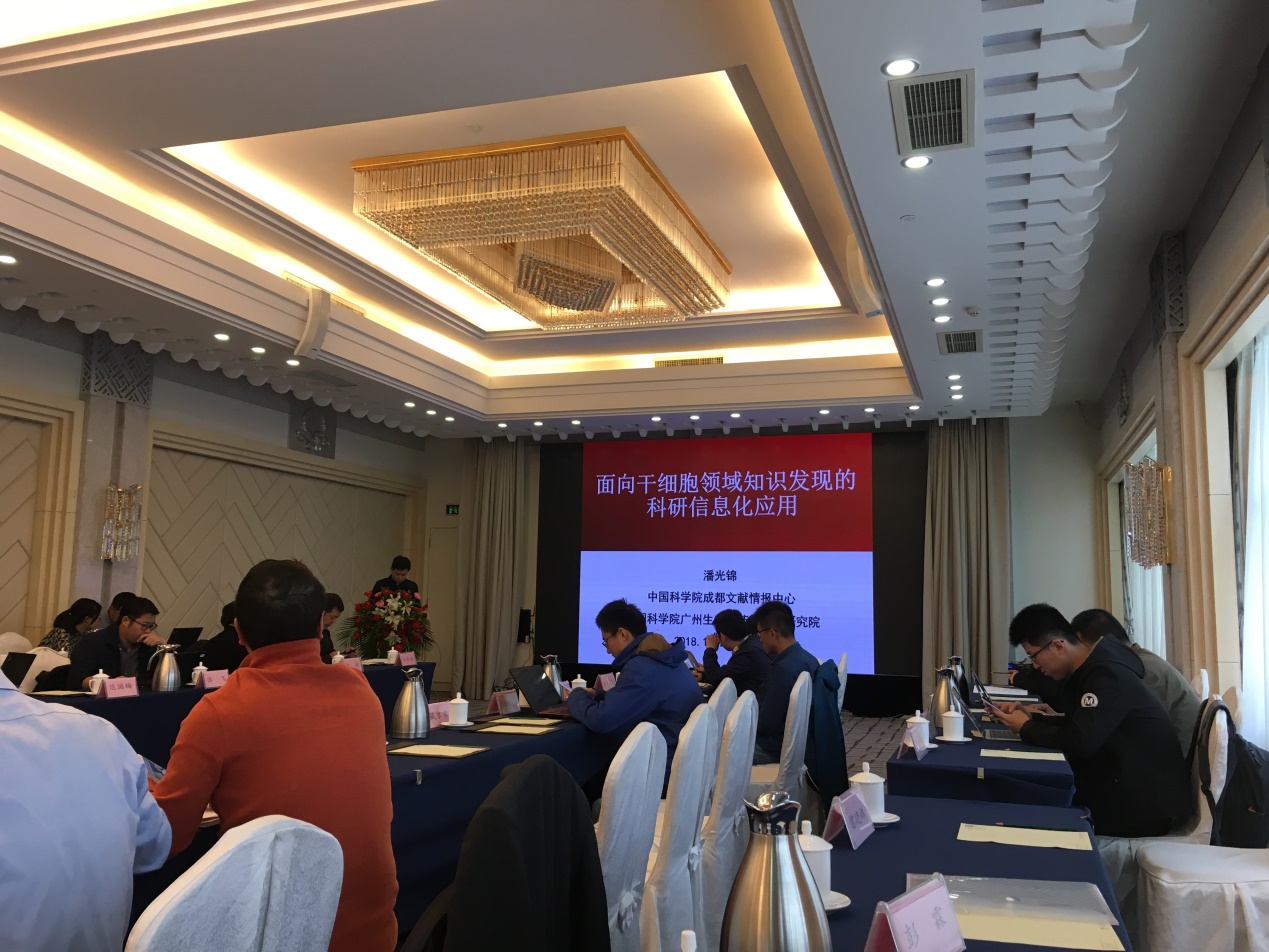成都文献情报中心与广州生物医药与健康研究院联合承担了专项中的“面向干细胞领域知识发现的科研信息化应用”课题。课题联合负责人、广州生物医药与健康研究院副院长潘光锦研究员从课题研究背景、建设内容、建设进展、完成情况和下一步工作五个方面介绍了课题相关情况,并就如何更有效地结合成都文献情报中心的信息情报优势与广州健康院的科研优势,利用信息化手段促进干细胞领域科技创新等问题和参会专家进行了交流。期间,课题执行负责人胡正银与“面向大尺度区域生物多样性格局与生命策略的科研信息化应用”、“海洋科学科技领域云”、“核安全科技领域云”等课题的负责人员,针对部分共性技术与数据获取等问题进行了交流与研讨。