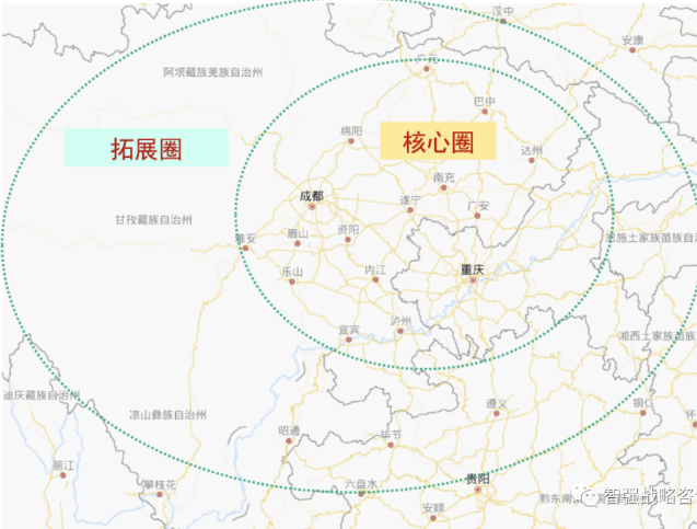 成渝地区双城经济圈的“拓展圈”,其地理与行政范围应该包括成渝地区双城经济圈的重要卫星城市(四川的西昌、攀枝花等城市),以及云南(昭通、丽江)、贵州(贵阳、遵义、六盘水)、陕西(汉中、安康)等部分城市。核心圈、拓展圈,就包括了川渝两省(市)全部行政区域,这样才有利于两个省级行政区域、成渝地区双城经济圈的区域发展的工作部署。如果四川省仍然按照《成渝城市群规划》规划的15个平原城市,重庆市仍然按照《成渝城市圈规划》确定的27个区县确定范围,那四川省其他的6个地区(城市)、重庆市的其他11个区县情何以堪?处于成渝地区双城经济圈区域发展战略覆盖省市,但却没有参与相应省市区域发展战略实施的机会?那如何执行省级行政区域的发展战略、成渝地区双城经济圈的区域发展战略?