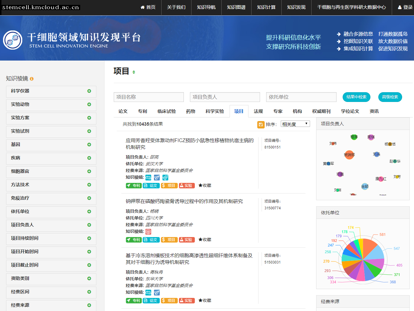 “干细胞知识发现平台与应用”是中科院成都文献情报中心张志强研究员和中科院广州生物医药与健康研究院潘光锦研究员联合承担的中国科学院“十三五”信息化专项项目“面向干细胞领域知识发现的科研信息化应用”的研究成果之一。