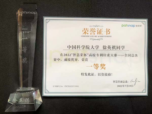 近日,由智慧芽信息科技(苏州)有限公司联合全国28家高校图书馆举办的2022年“智慧芽杯”高校专利检索大赛全国总决赛落下帷幕。经过多轮激烈角逐,成都文献情报中心博士研究生徐英祺获全国总决赛大众组一等奖。