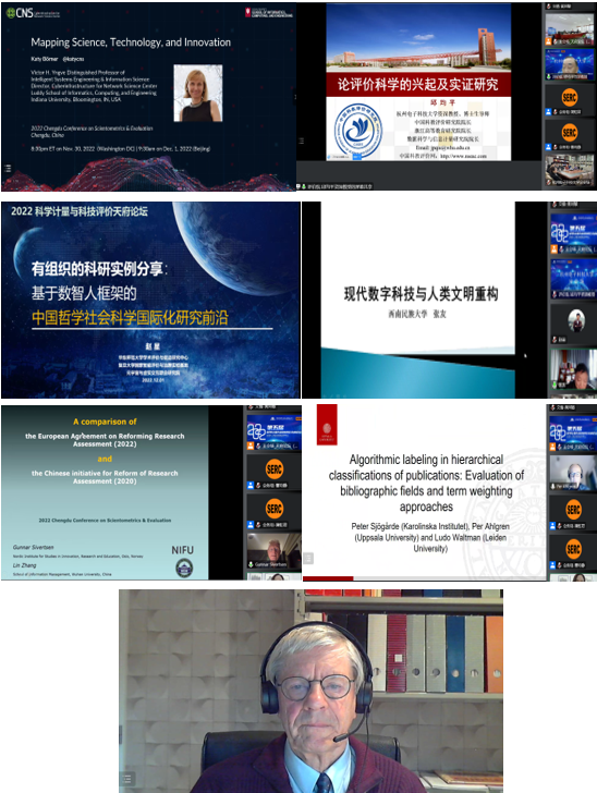 在特邀报告环节,来自美国印第安纳大学的Katy Borner教授、杭州电子科技大学的邱均平资深教授、复旦大学赵星教授、西南民族大学张友教授等,分别围绕可视化计算模型支撑科技政策研究、“评价学”与世界大学第五大评价体系构建、基于数智人框架的中国哲学社会科学国际化研究前沿、现代数字科技与人类文明重构等主题作报告,并与参会听众进行互动交流。在下午的特邀报告环节,挪威北欧创新研究与教育研究所(NIFU)的Gunnar Sivertsen教授、比利时鲁汶大学Ronald Rousseau教授、瑞典乌普萨拉大学Per Ahlgren副教授等分别围绕欧洲科研评估改革进展与实践、领域标签与术语加权算法的出版物分层分类算法等作报告。