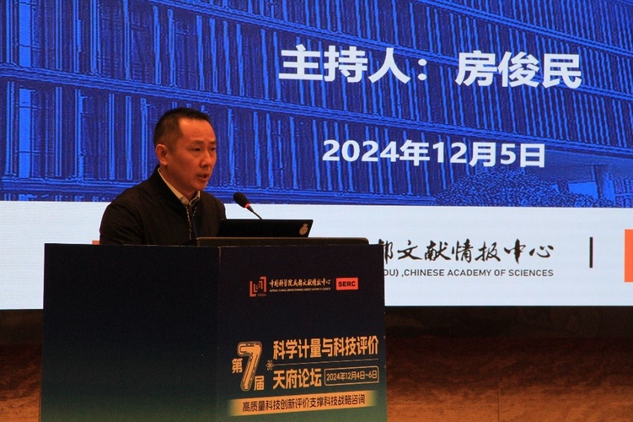12月5-6日,由中国科学院成都文献情报中心主办、科技创新评价研究中心(SERC)承办、15家单位协办、18家期刊支持的“第七届科学计量与科技评价天府论坛”在成都成功举办。本次论坛主题为“高质量科技创新评价支撑科技战略咨询”,论坛吸引了来自加拿大、意大利、古巴及国内众多高校科研院所的近200位学者和师生参与。中国科学院成都文献情报中心主任邓勇研究员参加会议并致辞,副主任房俊民研究馆员主持论坛开幕式。