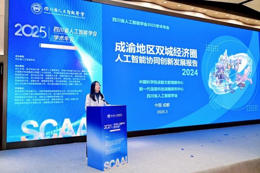 2025年3月23日下午,四川省人工智能学会2025学术年会在成都天府国际会议中心成功举办。来自全省各高校院所、企事业单位的300余名专家学者参加了学术年会。在此次年会上,中国科学院成都文献情报中心与四川省人工智能学会联合发布了《成渝地区双城经济圈人工智能协同创新发展报告(2024)》。