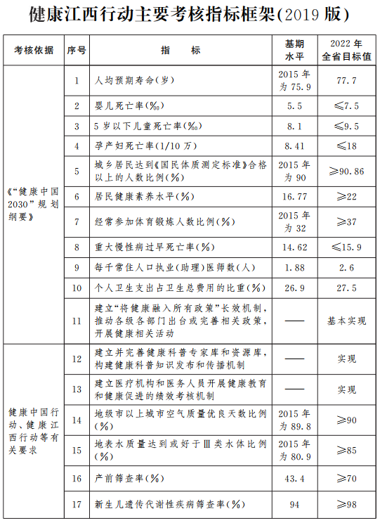 为贯彻落实健康中国战略,推进健康江西行动,根据党中央、国务院《“健康中国2030”规划纲要》和国务院《关于实施健康中国行动的意见》,以及省委、省政府《“健康江西2030”规划纲要》,加快推动从以治病为中心转变为以人民健康为中心、动员全社会落实预防为主方针,实施健康江西行动,提高全民健康素质,现提出以下实施意见。