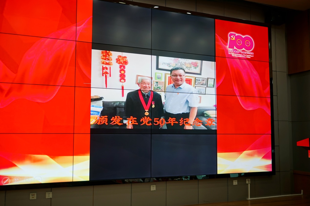 阚瑞亭和余清泰两位老党员在会上发言。因身体原因不能亲临会场的阚老通过视频向中心全体党员送上了祝福;余老深情回顾了自身参加革命的峥嵘岁月,讲述了自己在中心工作的经历,对中心未来的发展寄予厚望,并对年轻一代给予了殷殷嘱托。