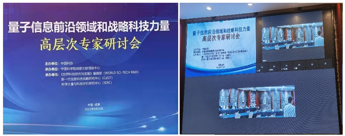 2021年9月28日,由中国科协主办、中国科学院成都文献情报中心承办的“量子信息前沿领域和战略科技力量高层次专家研讨会”在成都召开。来自全国量子信息领域10余家科研机构、创新研发企业的知名专家、企业家等共30余人,以线上线下相结合的方式参加了此次研讨会。中国科学院院士/中国科学技术大学郭光灿教授、中国科学院院士/南京大学祝世宁教授为研讨会开幕致辞,会议承办方中国科学院成都文献情报中心党委书记曲建升研究员祝研讨会取得高水平成果,中心副主任房俊民研究馆员主持启动研讨会。