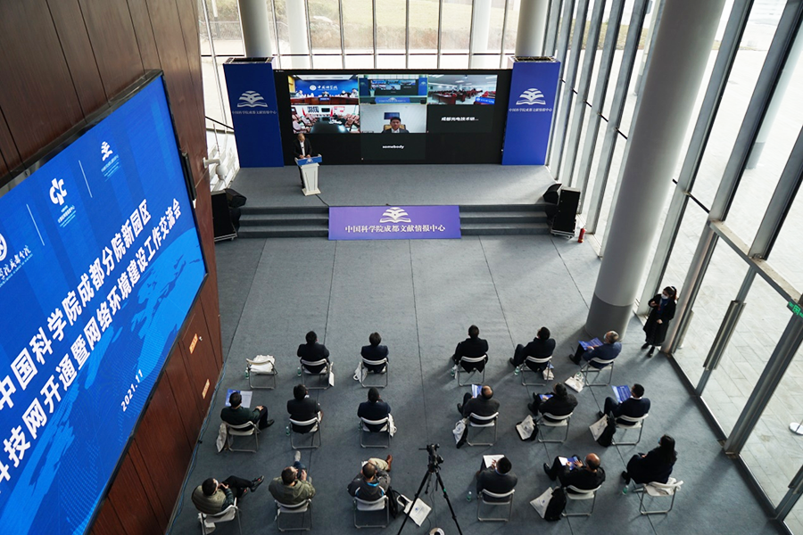 11月22日,中科院成都分院新园区科技网开通暨网络环境建设工作交流会在蓉举行。中科院条财局局长黄向阳,中科院成都分院分党组书记、院长王嘉图,四川天府新区党工委副书记、成都科学城党工委书记邱旭东,中科院网络中心党委书记廖方宇和中科院成都文献情报中心党委书记曲建升等出席会议。会议由成都文献情报中心党委副书记、主任邓勇,副主任房俊民分阶段主持。