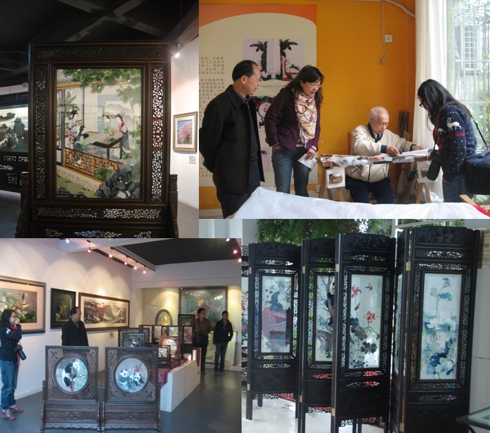 蜀秀艺术馆,在安靖镇府河边,是一个以蜀绣为主题,集蜀绣新品技术开发、生产、销售于一体的蜀绣产业基地。馆不大,但蜀绣作品丰富,还有绣娘在现场刺绣工作。同志们兴致勃勃的参观了展厅,还向馆内工作人员请教如何欣赏蜀绣,以及与其它三大名绣的区别。