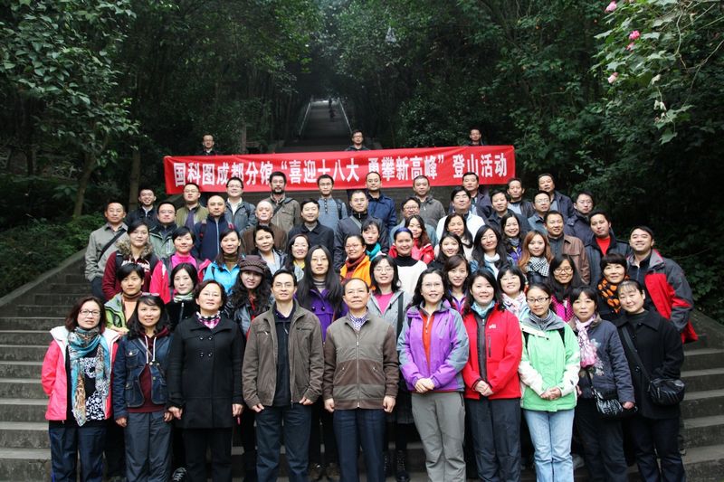 为迎接中国共产党第十八次全国代表大会胜利召开,调动全馆广大职工爱党、爱国热情,在成都分馆领导的统一部署下,11月7日,成都分馆党委、工会联合组织全体在职职工在新津老君山举行了“迎盛会、跟党走、献礼十八大”系列活动之“喜迎十八大,勇攀新高峰”登山活动。