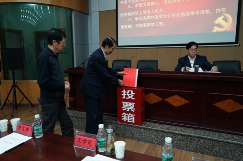陈永波宣布了上级党组织对本次选举候选人的批复文件。工作人员宣读了大会选举办法、监票人和计票人名单,并提请全体到会党员审议和通过。