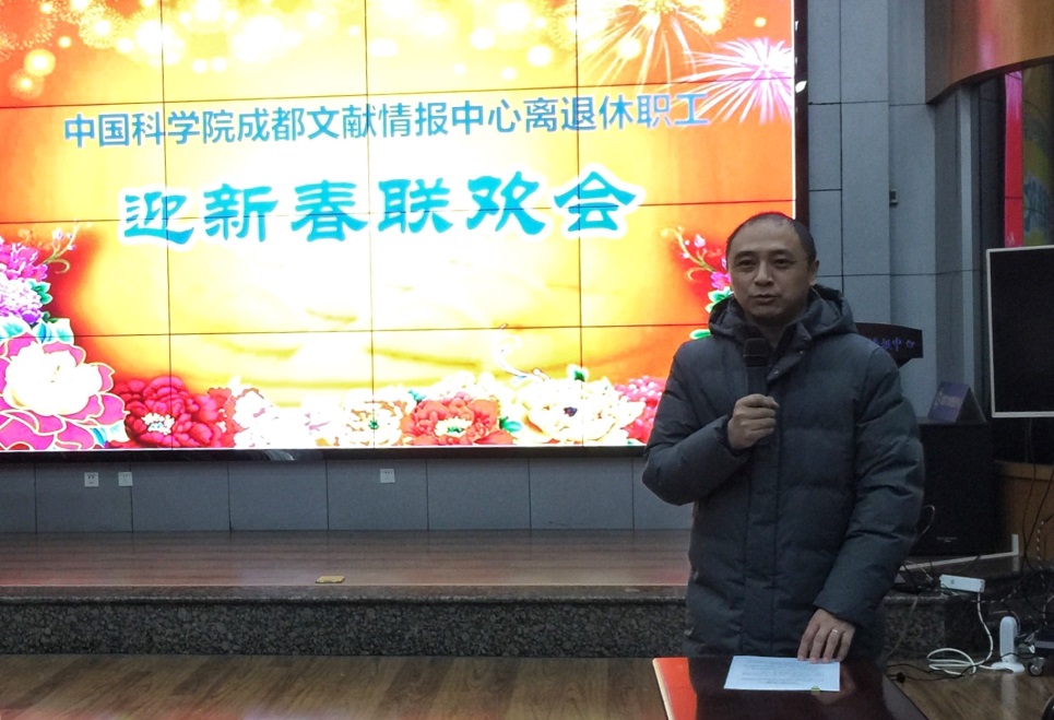 2019年1月24上午,成都文献情报中心学术厅气氛热烈,离退休同志近40人欢聚一堂举行迎新春联欢会,中心党委书记邓勇到会给大家拜年。