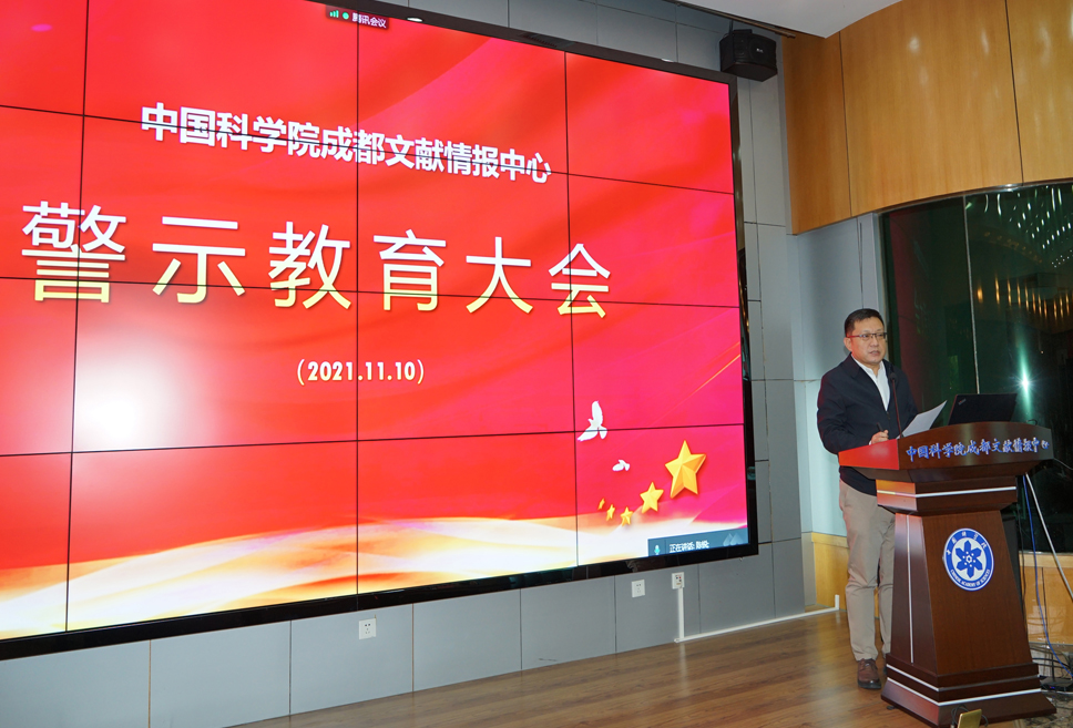 11月10日,成都文献情报中心召开警示教育大会,组织签署《党风廉政建设责任书》,宣讲廉政党课专题报告。中心党委书记曲建升,中心主任、党委副书记邓勇,副主任房俊民,纪委书记江晓波参加会议。会议由党委办公室副主任(主持工作)刘宇主持。