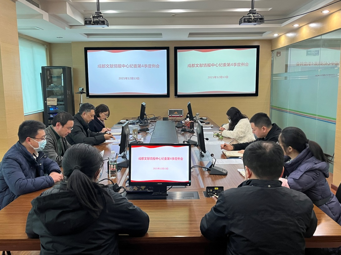 12月13日,成都文献情报中心纪委召开第四季度工作例会扩大会议,学习党的十九届六中全会精神。纪委书记江晓波主持会议。