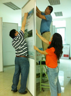 信息服务部主任鄢小燕、副主任任波等带领部门工作人员认真布展,根据展板的规格,耐心地尽力将展板调整到了参观者方便悦目的高度。展板刚刚布置好,馆内各个部门的不少工作人员和一些研究生便前来观看。
