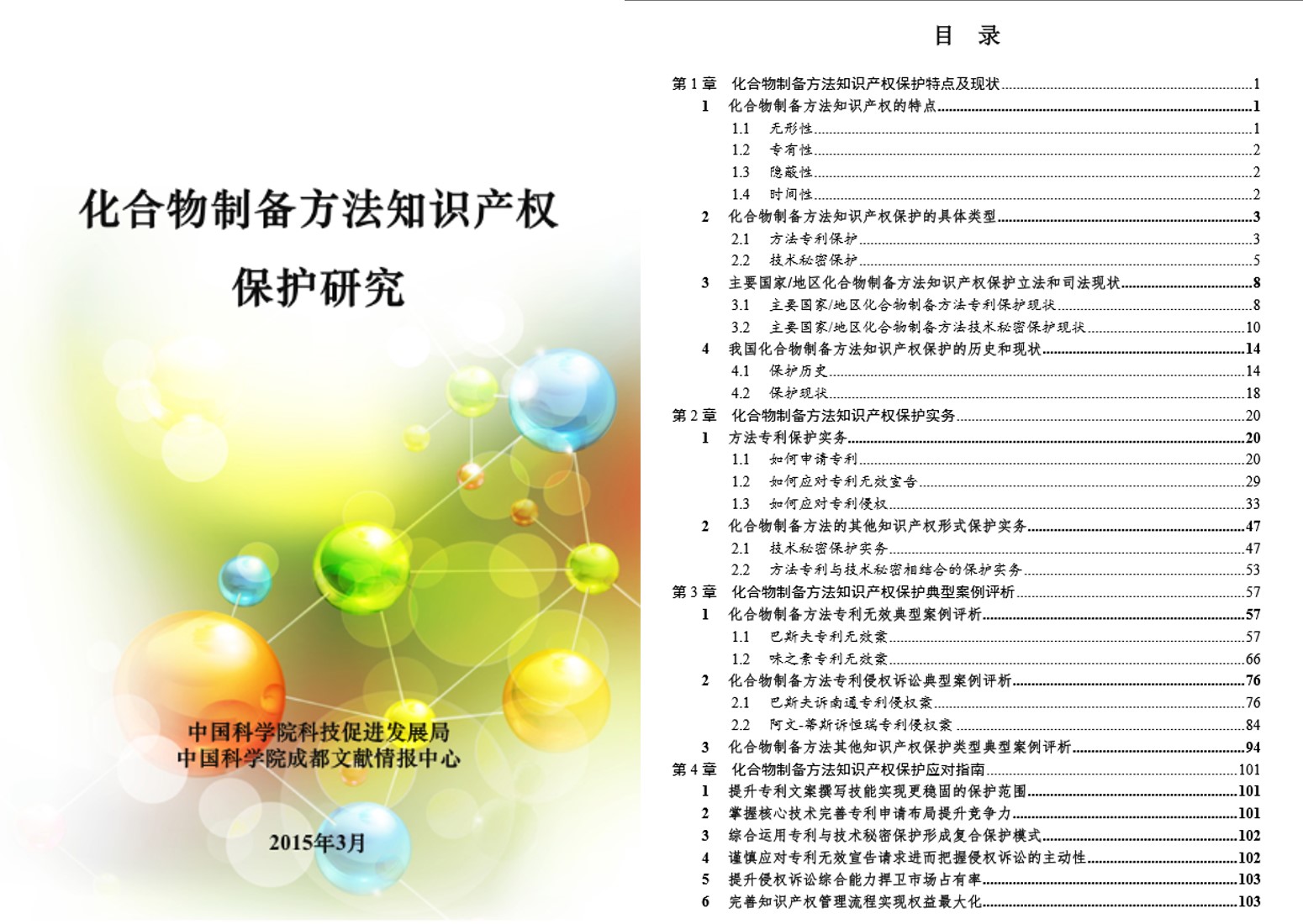 本研究报告是服务于中科院STS计划“药物关键中间体的产业化”重点项目需求的研究成果。随着技术进步和知识产权保护意识的提高,有关化合物制备方法专利的侵权纠纷日益增多,而化合物制备方法知识产权不同于一般产品知识产权,涉及大量的工艺参数和影响因素等复杂专业技术要素,在实践过程中存在保护力度弱、侵权判定难度大等问题。本报告针对“药物关键中间体的产业化”项目组人员长期以来在化合物制备方法类科研成果的知识产权保护策略方面面临的困惑,从化合物制备方法涉及的知识产权保护与运用流程的不同环节入手,解析了国内外化合物制备方法权利人在专利撰写、申请、无效、侵权纠纷等方面的具体实务,尤其重点关注了专利无效宣告、专利及技术秘密侵权纠纷的典型案例,以期为方法权利人有效维护自身权益提供参考。