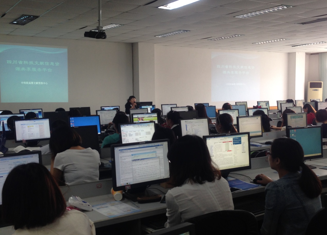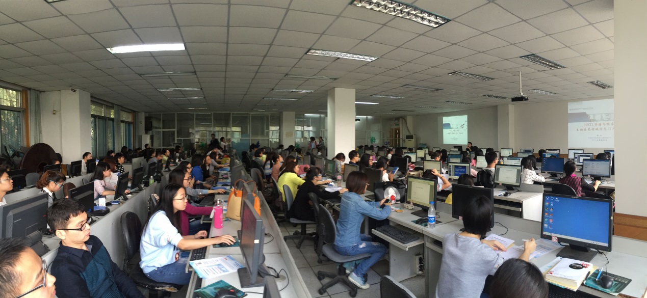 本次培训活动是应四川医科大学图书馆的邀请,结合该校用户的需求并作为该校信息素养教育系列讲座的重要内容,经过多次沟通与交流最终确定活动以“生物医药领域科技文献资源与信息服务”为主题。当天上午10点宣传活动如期在四川医科大学忠山校区图书馆电子阅览室举行,师生们积极参与,可以容纳120人的电子阅览室座无虚席。四川医科大学图书馆信息服务部主任冯勤首先代表学校图书馆对成都文献情报中心老师们的到来表示欢迎,并介绍了宣传培训活动的老师和具体内容。随后,韩红、陈力、鄢小燕先后以“国家科技图书文献中心(NSTL)及生物医药领域信息门户推介”、“生物医药与化学信息资源与服务”、“四川省科技文献信息资源共享服务平台”为题,向师生们系统介绍了国家、科学院以及四川省的各类科技文献信息服务平台特色与优势,令师生们充分感受到科技文献资源的丰富和信息服务的便捷,最后的问答互动环节气氛异常活跃,同学们就自己关心和感兴趣的问题踊跃提问,成都文献情报中心的老师均耐心细致地一一作答,并为积极提问的同学发放了NSTL用户试用卡。