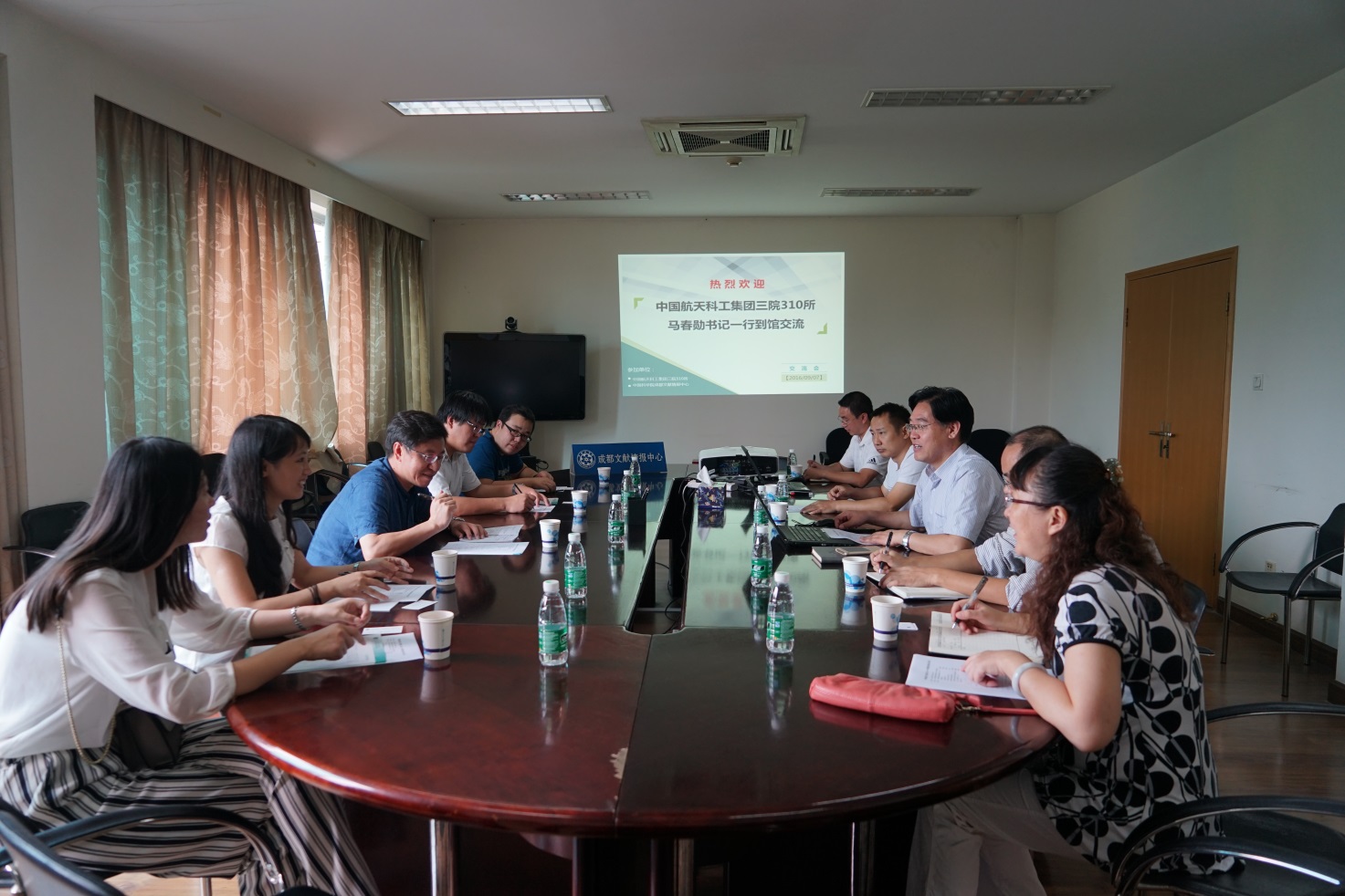 9月7日上午,中国航天科工集团三院310所纪委书记马春勋、三院图书馆吕保坤馆长等一行5人来成都文献情报中心进行调研交流。中心主任张志强主持座谈交流会,中心科技处处长房俊民、信息服务部主任鄢小燕、网络与信息技术部主任文奕、副主任胡正银参加了座谈交流会。