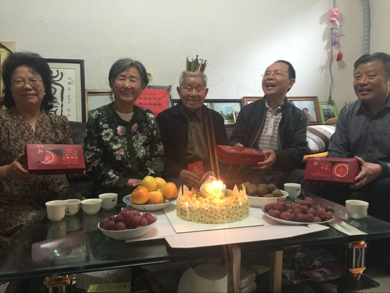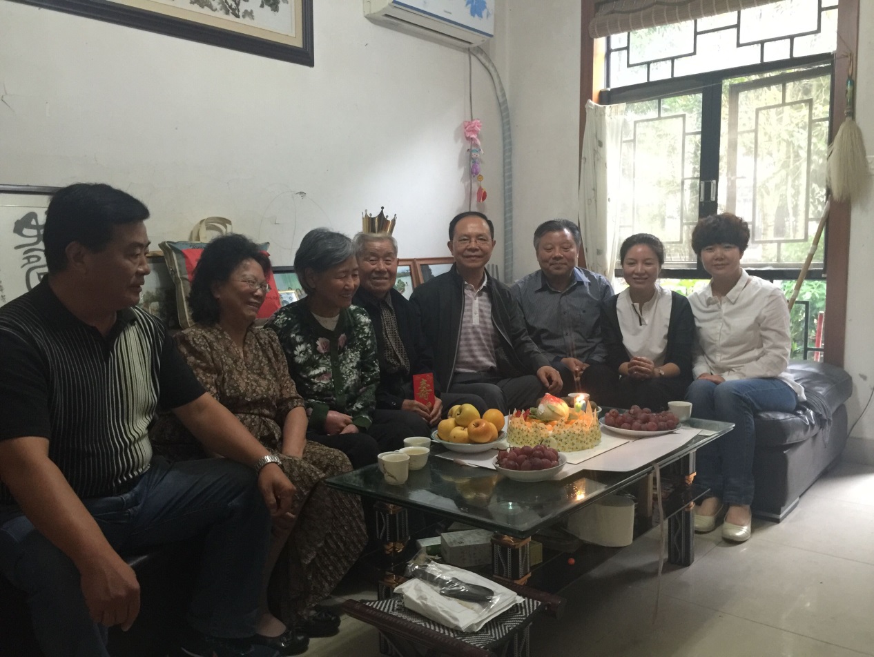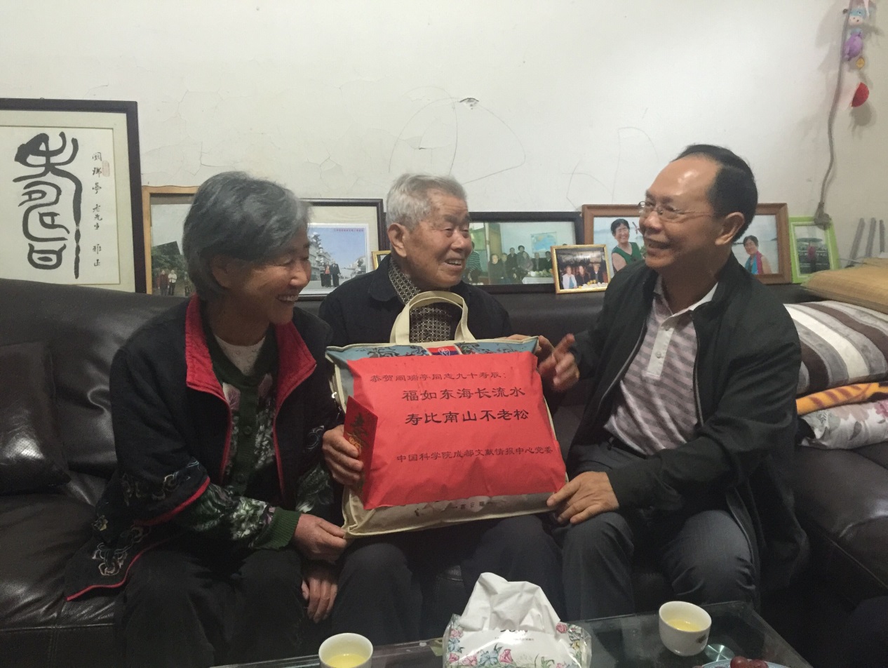 2016年9月14日上午,中心党委书记曾文华带领综合办工作人员和离退休支部成员一行,乘车前往青城山脚下,为在此休养的离休干部阚瑞亭同志祝贺90大寿。