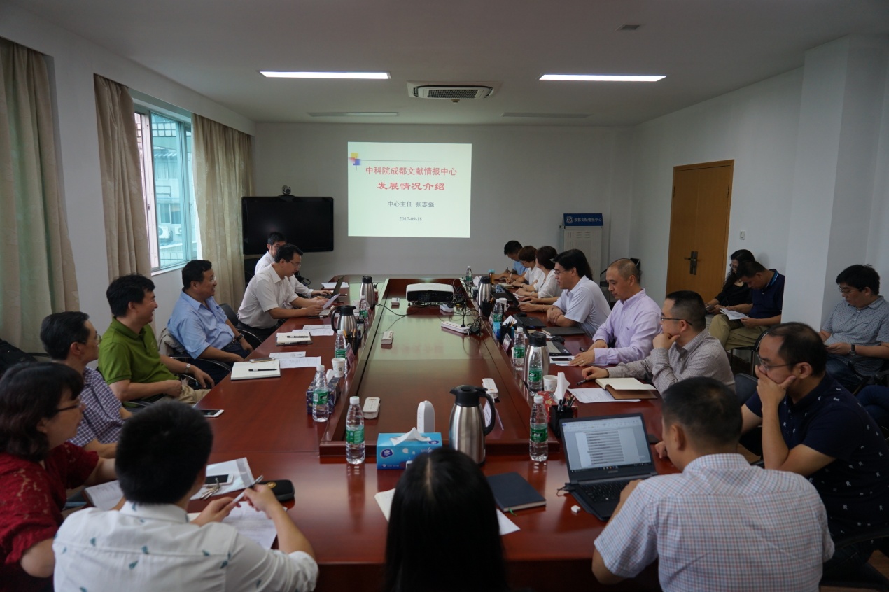 9月18日上午,中国科学院文献情报中心主任刘会洲、党委书记何林一行调研成都文献情报中心。成都文献中心领导班子、中层干部、研究员共24人参加了调研座谈会。会议由成都文献中心党委书记邓勇主持。