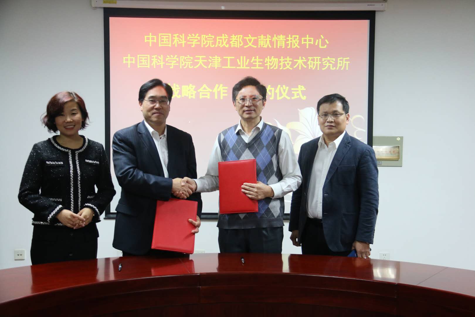 11月7日,中国科学院成都文献情报中心主任张志强、战略情报部主任陈方一行访问中国科学院天津工业生物技术研究所,就双方在生物科技领域战略情报研究与咨询工作举行交流研讨,并签订了战略合作协议。