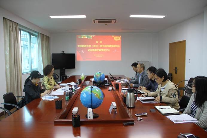 5月10日上午,中国地质大学(武汉)图书馆副馆长程建萍、信息服务部副主任刘建辉一行访问中国科学院成都文献情报中心,中心党委书记邓勇、战略情报部副主任陈云伟、科技处副处长张邓锁以及战略情报部知识产权团队、学科咨询服务部骨干人员进行了接待,并就双方业务情况与经验进行了交流与座谈。座谈会由邓勇主持。
