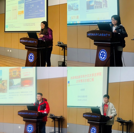 12月6日下午,成都文献情报中心组织召开2017-2018年公派出国留学人员学习报告会。四位赴美国高校访问学习的业务骨干李姝影、周涛、徐英祺、杨宁分别作了学习报告。中心党委书记邓勇主持会议,各部门科研人员参加会议。