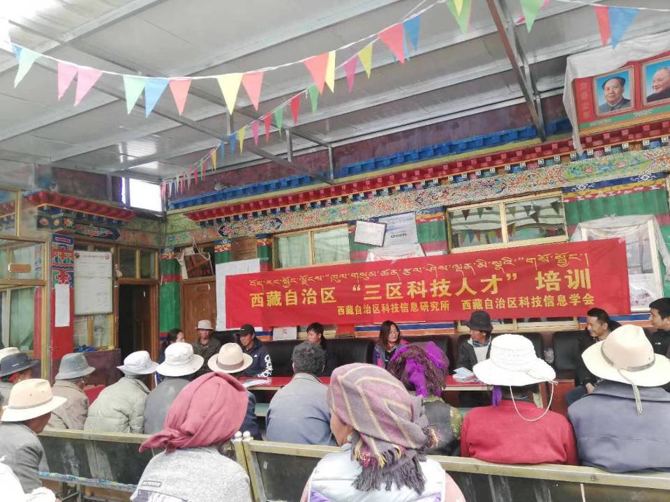 柴苗岭2018年4月带队“三区科技特派团”,在拉孜县扎西岗乡若措村开展三区科技人才培训会